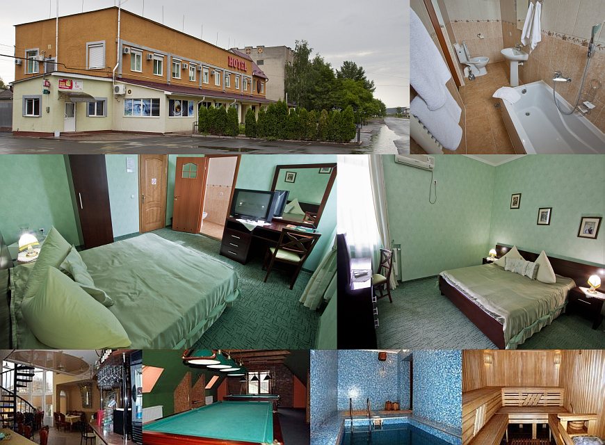 Preis: Celoročně: pokoj Standard 215 UAH/pokoj/noc, Pololux 255 UAH/pokoj/noc, Lux-Studio 305 UAH/pokoj/noc (přistýlka 50 UAH/noc). Sauna (do 10 lidí) 100 UAH/hod. Rekreační poplatek 1 %. Snídaně 40 UAH.