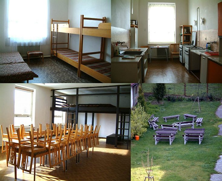 Preis: Celoročně: ve vlastním spacáku 150 Kč/os/noc, jen pro kolektivy vedené pedagogem. Pronájem kuchyně 200 Kč/hod. nebo 1.000 Kč/den. Pronájem tanečního sálu 300-400 Kč/hod nebo 1.500-2.000 Kč/den. Ceny jsou konečné a platí i při ubytování jen na 1 noc.