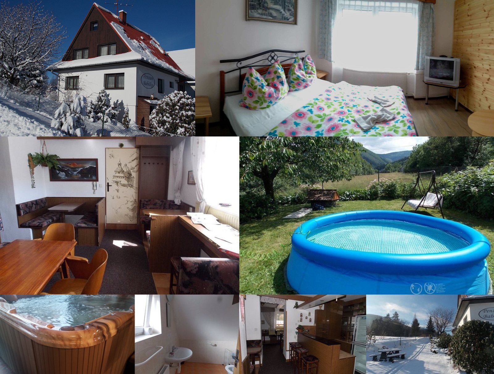 Preis: Krátkodobé pobyty (mimo Silvestr a prázdniny): 400 Kč/os/noc, děti do 12 let 330 Kč/noc, do 3 let zdarma bez nároku na lůžko, min. 2 osoby, min. 2 noci. Týdenní pobyty: pokoj 2-lůžkový 5.300 Kč/pokoj/týden, 3-lůžkový 7.500 Kč, 4-lůžkový 9.800 Kč, 5-lůžkový 10.500 Kč (apartmán 11.200 Kč), celý objekt mimo prázdniny 25.000 Kč/penzion/týden (tj. při 18 osobách 199 Kč/os/noc), celý objekt o prázdninách 39.000 Kč/penzion/týden. Silvestr: 49.000 Kč/penzion/týden. Rekreační poplatek 35 Kč/os/noc. Poplatek za využití kuchyně a společenské místnosti 20 Kč/os/noc (jen dospělí). Parkování zdarma.