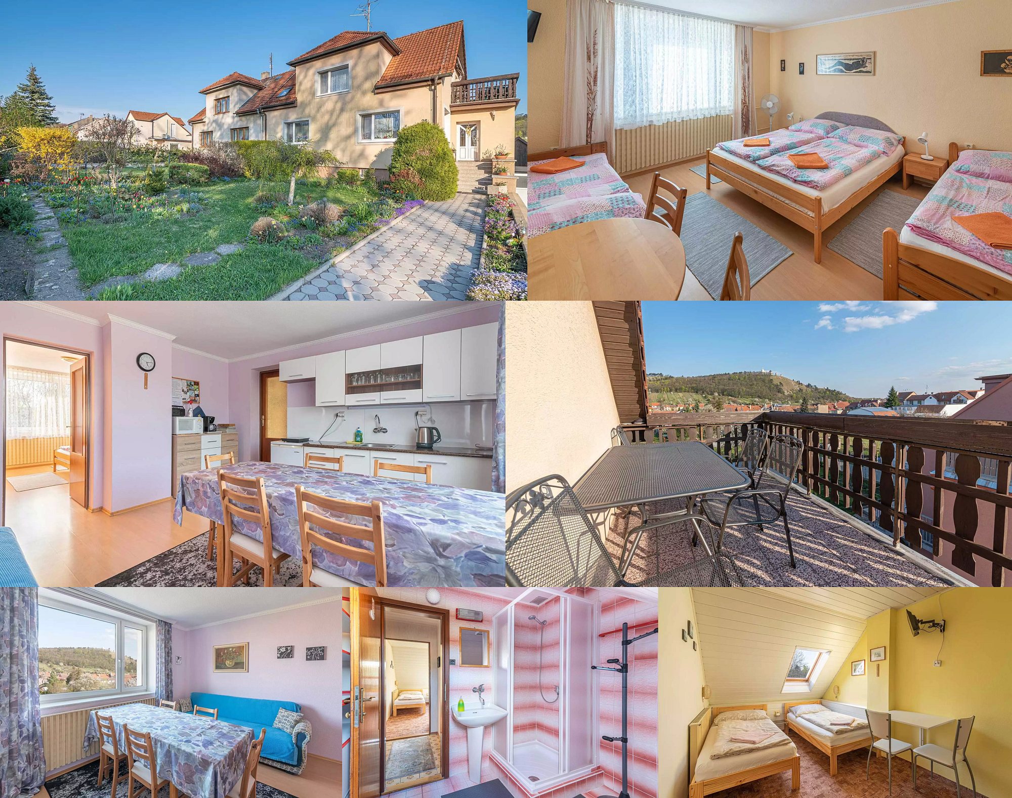 Preis: Celoročně: 2-lůžkový pokoj 1.300 Kč/pokoj/noc (tj. při 2 osobách 650 Kč/os/noc), 4-lůžkový apartmán 2.600 Kč/apartmán/noc, přistýlka 300 Kč/noc, dětská postýlka 100 Kč/noc. Při ubytování jen na 1 noc +100 Kč/pokoj/noc. Používání klimatizace 50 Kč/pokoj/noc. Pes 150 Kč/noc. Na Velikonoce +100 Kč/pokoj/noc. Ceny jsou konečné (obsahují i rekreační poplatky, povlečení, energie, WiFi internet i parkování ve dvoře).