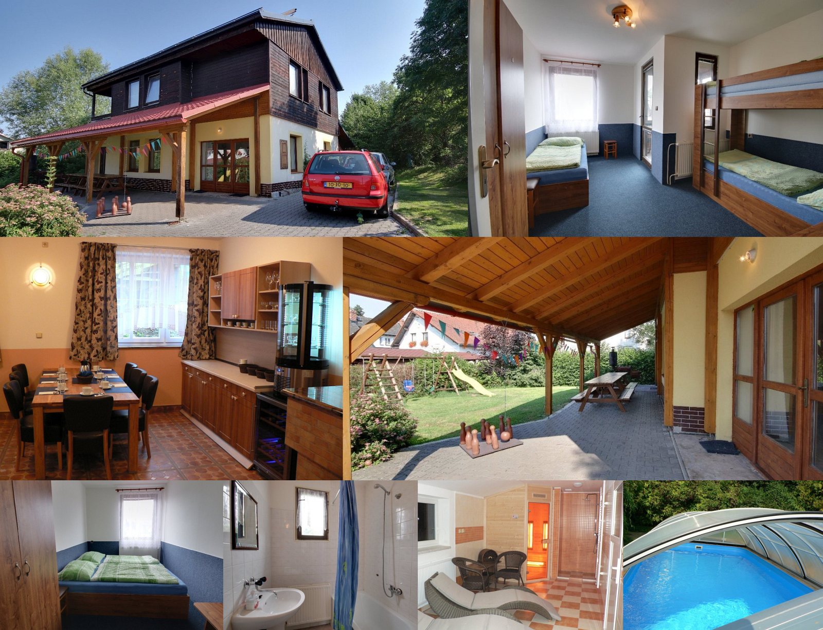 Unterkunft: Stylová nově postavená chalupa se 4 komfortními apartmány a krásnou zahradou s bazénem, brouzdalištěm a velkým dětským hřištěm (pirátská loď, lezecká stěna atd. mehr...