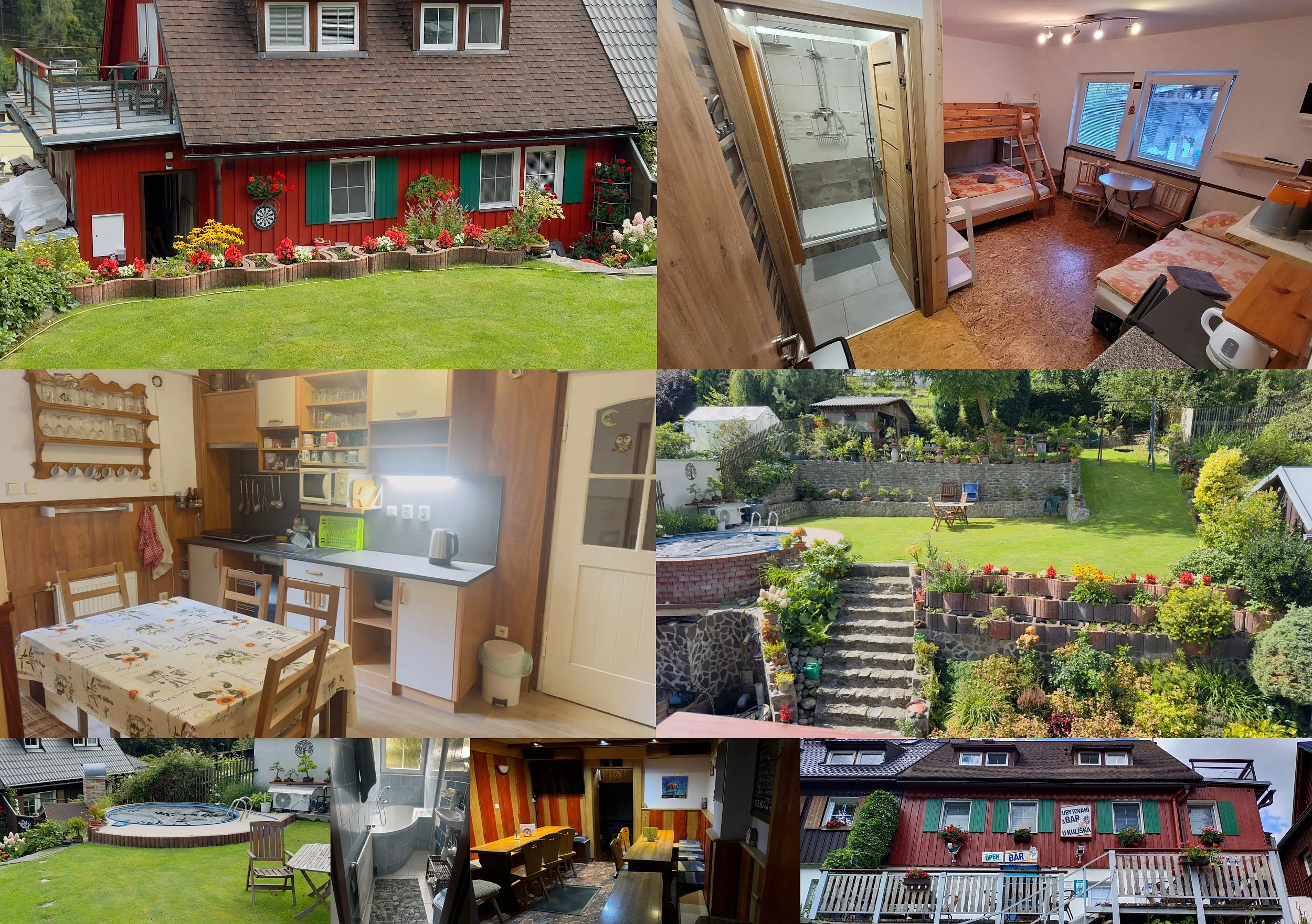 Unterkunft: Útulný penzion s pokoji s 5 pokoji (2x3, 3x4 lůžka), barem i pro veřejnost a velkou, nádherně upravenou zahradou. mehr...