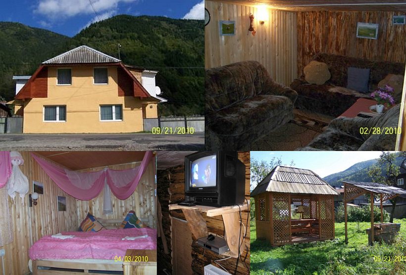 Preis: Malá chatka: 1 osoba 200 UAH/chata/noc, 2-3 osoby 300 UAH/chata/noc. Velká chata: 3-lůžkový pokoj 300 UAH/pokoj/noc, celá chata 1.200 UAH/chata/noc. Přistýlka 50 UAH/noc. Snídaně 50-70 UAH. Ceny jsou konečné (obsahují i povlečeí) a platné po celou sezónu, i při ubytování jen na 1 noc.