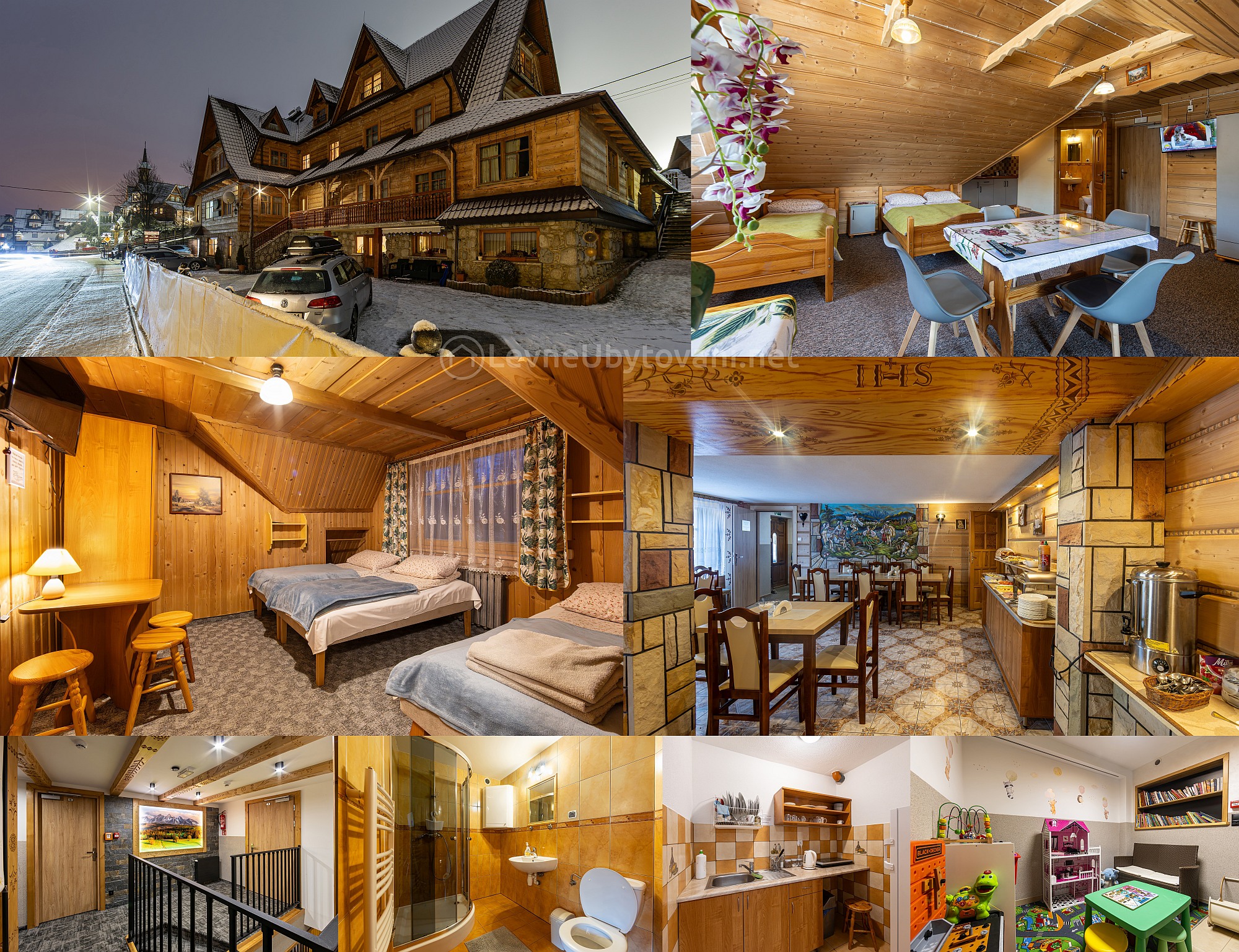 Preis: Ceny jsou včetně snídaně i sauny! Léto (22.06.-06.09.): 180 zł/os/noc. Zima (01.01.-07.03.): 80-135 zł/os/noc. Mimosezóna: 130 zł/os/noc. Dítě 12-16 let (celoročně) 70 zł/noc, 5-12 let 50 zł/noc, 1 dítě do 5 let zdarma (další 25 zł/noc). Zvíře 60 zł/pobyt. Rekreační poplatek 1,50 zł/os/noc. V rodinném pokoji platba min. 2 osoby + dítě, ve studiu či apartmánu min. 3 osoby. V sezóně jen vícedenní pobyty. Parkování i WiFi zdarma.