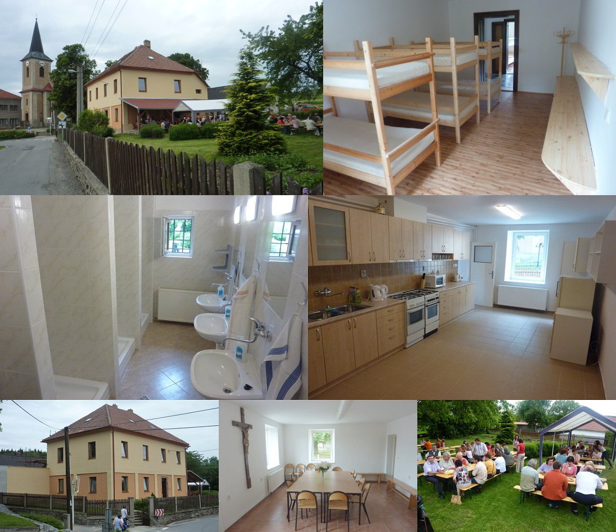 Ve složené fotografii jsou ve 2. řádku pokoje, ve 3. řádku domky a chatky.