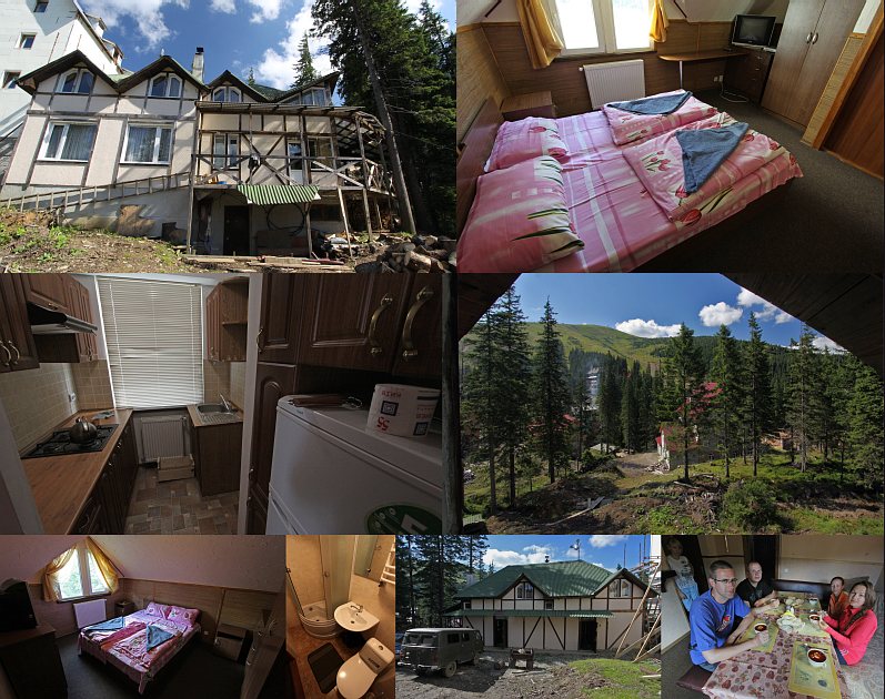 Preis: Léto: pokoj 300 UAH/os/noc (v ceně i sprcha), stanování na pozemku 100 UAH/stan/noc (za osoby ve stanu se již nic neplatí). Zima: pokoj 400 UAH/os/noc (včetně sprchy). Ceny platí i při ubytování jediné osoby.