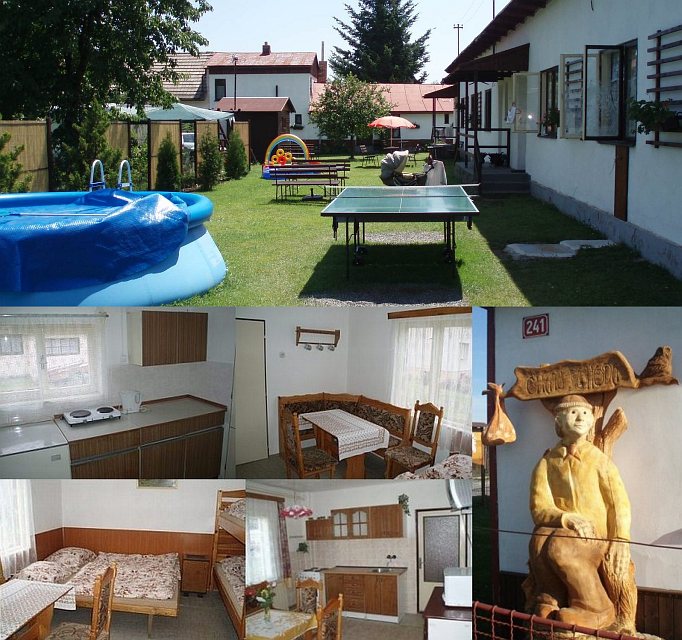 Preis: Celoročně mimo svátky: léto (1.6.-30.9.) 400 Kč/os/noc, zima (1.12.-31.3.) 450 Kč/os/noc, mimosezóna 350 Kč/os/noc, ceny jsou stejné v zahradním domku i apartmánech a platí i při ubytování jen 1 osoby (neobsazená lůžka se nehradí), při plném obsazení apartmánu či domku sleva 50 Kč/os/noc. Vánoce a Silvestr (20.12.do 2.1.): apartmán v přízemí (3 os.) 1.350 Kč/apt/noc, v podkroví (10 os.) 4.500 Kč/apt/noc, zahradní domek (4 os.) 1.800 Kč/domek/noc. Rekreační poplatek 40 Kč/os/noc (jen dospělí). Ceny platí při ubytování na 3 a více nocí. Energie i povlečení jsou v ceně.