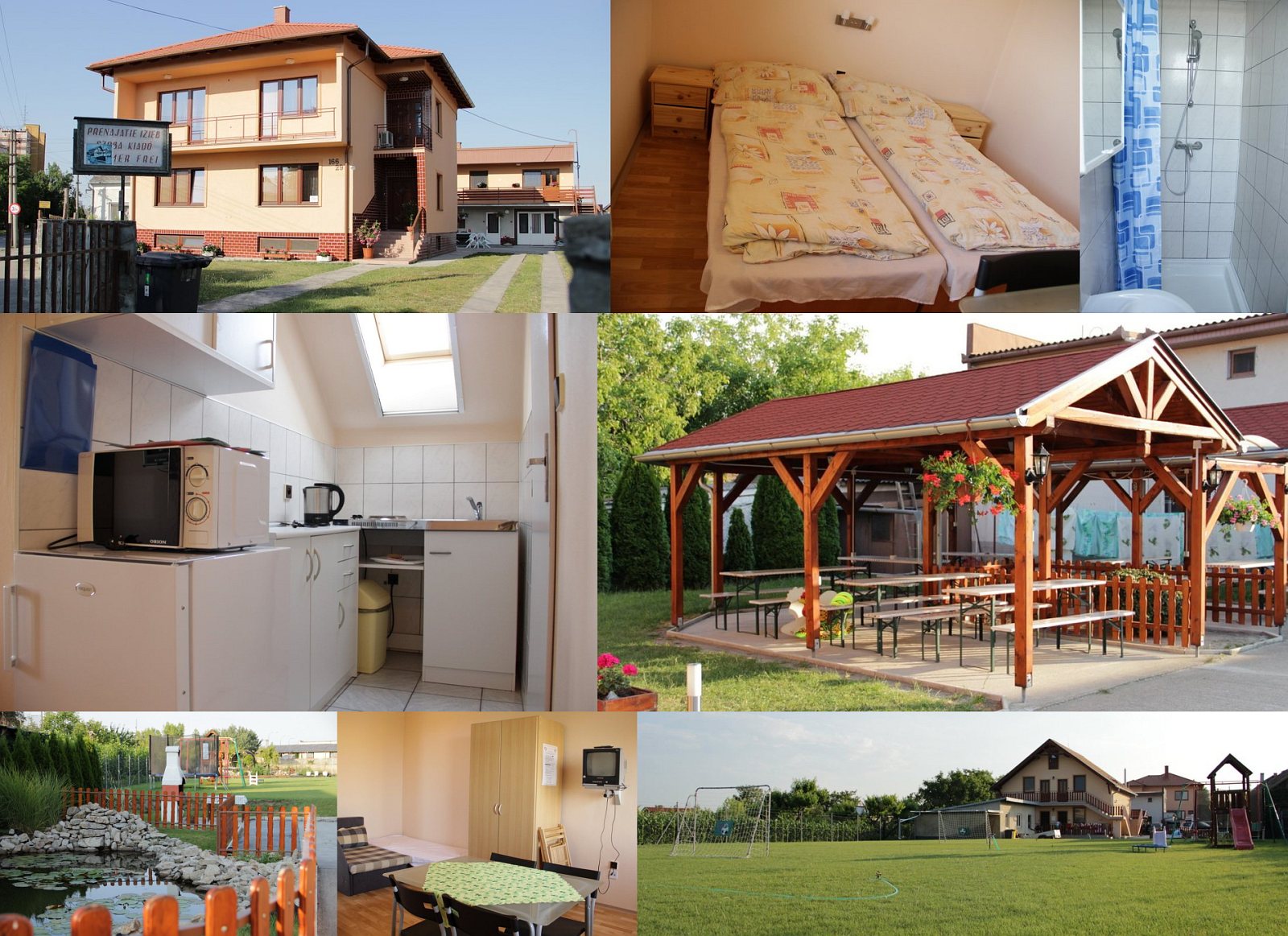 Unterkunft: Jednoposchodový samostatný apartmánový dom. V dome je 8 apartmánov, v každok apartmáne je možné ubytovať maximálne 4 osoby. Na prízemí sú apartmány s terasou na posedenie, na poschodí s balkónom. Každý apartmán je vybavený vlastnou kuchyňou (chladnička, rýchlovarná kanvica, el. dvojplatnička, mikrovlnka, nádobí), vlastnou sprchou a wc, 3 posteľami + 1 prístelkou, farebným TV. Bezplatné parkovanie na dvore. Možnosť posedenia pod altánom. Veľký dvor s ohniskom a záhradným grilom, hojdačkami a pieskoviskom. Ubytovanie je možné iba cez letné obdobie (mesiace 04-10).