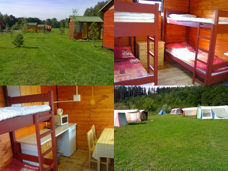Unterkunft: Kemp s plochou pro vlastní stany a karavany a ubytováním dřevěných bungalovech. Bungalovy (12x4 lůžka): mají vybavenou kuchyň (mikrovlnka, varná konvice, lednice, plotýnkový vařič, nádobí, kuchyňská deska, jídelní stůl), 2 patrové palandy, komodu, verandu 2x4 m. Společné sociální zařízení s teplou vodou. Možnost připojení na rozvody elektřiny. Velká zděná pivnice s kuchyní (konání malých country bálů a zábaviček). Kemp je v provozu 1.5.-30.09.