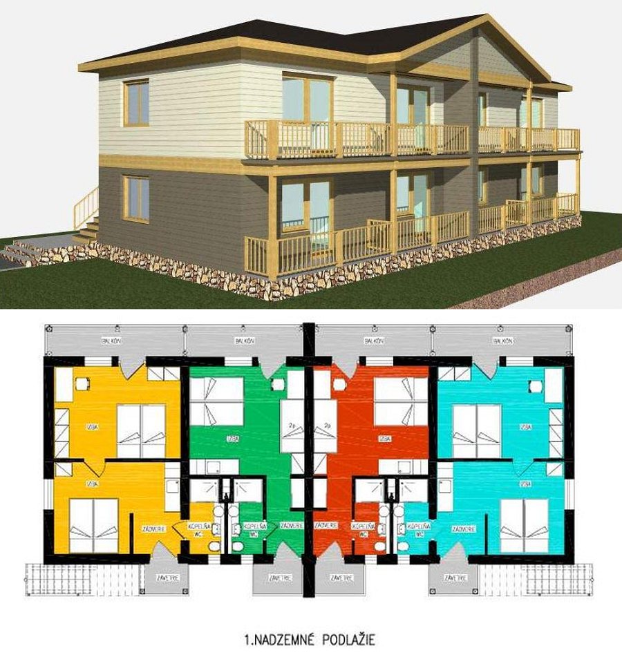 Unterkunft: Apartmánová chatka novovybudovaná v roku 2018. V chatke je 8 apartmánov, každý pre pre 4 osoby (+ možnosť prísteliek). V každom apartmáne je kuchyňa (el. dvojplatnička, mikrovlnka, rýchlovarná kanvica, chladnička s mrazničkou), kúpeľňa, spálňa s manželskou a poschodovou posteľou, TV-SAT, rádiom, klimatizáciou a balkónom. V štyroch väčších apartmánoch je aj spoločenská miestnosť s pohodlným gaučom (možné ako prístelka pre dve osoby). V celej chate je WiFi pripojenie.