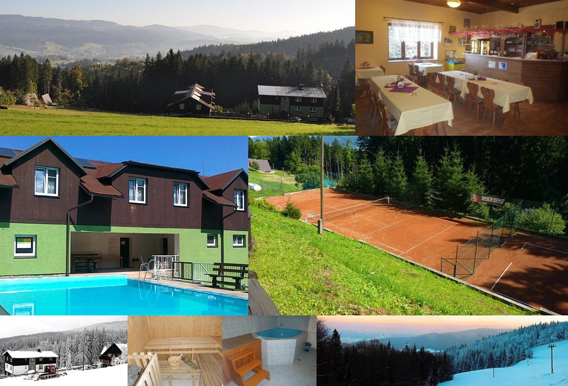 Unterkunft: Horský hotel nabízející i turistickou ubytovnu pro přespání méně náročných hostů (vedle dalších komfortnějších možností). Turistická ubytovna je samostatná budova umístěná mezi bazénem a sjezdovkou. V ubytovně je celkem 47 lůžek v pokojích s patrovými postelemi (4x 2-lůžkový, 10x 4-lůžkový). Vždy 2 pokoje sdílí společné WC a sprchovací kout. Na pokojích není TV. Restaurace s domácí kuchyní (vaříme s čerstvých surovin, nabízíme grilované speciality), vinárna, školící místnost, klubovna, bowling, kulčeník, stolní fotbal, letní venkovní bazén, sauna, whirlpool, tenisový a volejbalový kurt, vlastní 450 m dlouhá uměle zasněžovaná sjezdovka. Hotel byl postaven v roce 1982.