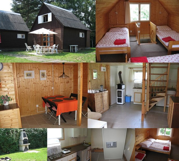 Unterkunft: Tři dvoupatrové 4-lůžkové chatky, každá s možností 2 přistýlek. V každé chatě je sprcha, WC, kuchyň (lednička, mrazák, dvojvařič, rychlovarná konvice), krbová kamna, sejf. Před každou chatou je zahradní nábytek, slunečník, gril. Parkování na oploceném pozemku. V areálu chatek se nachází betonový pingpongový stůl, ohniště, betonový zahradní gril s udírnou. Chatky jsou v provozu v měsících 04-10.