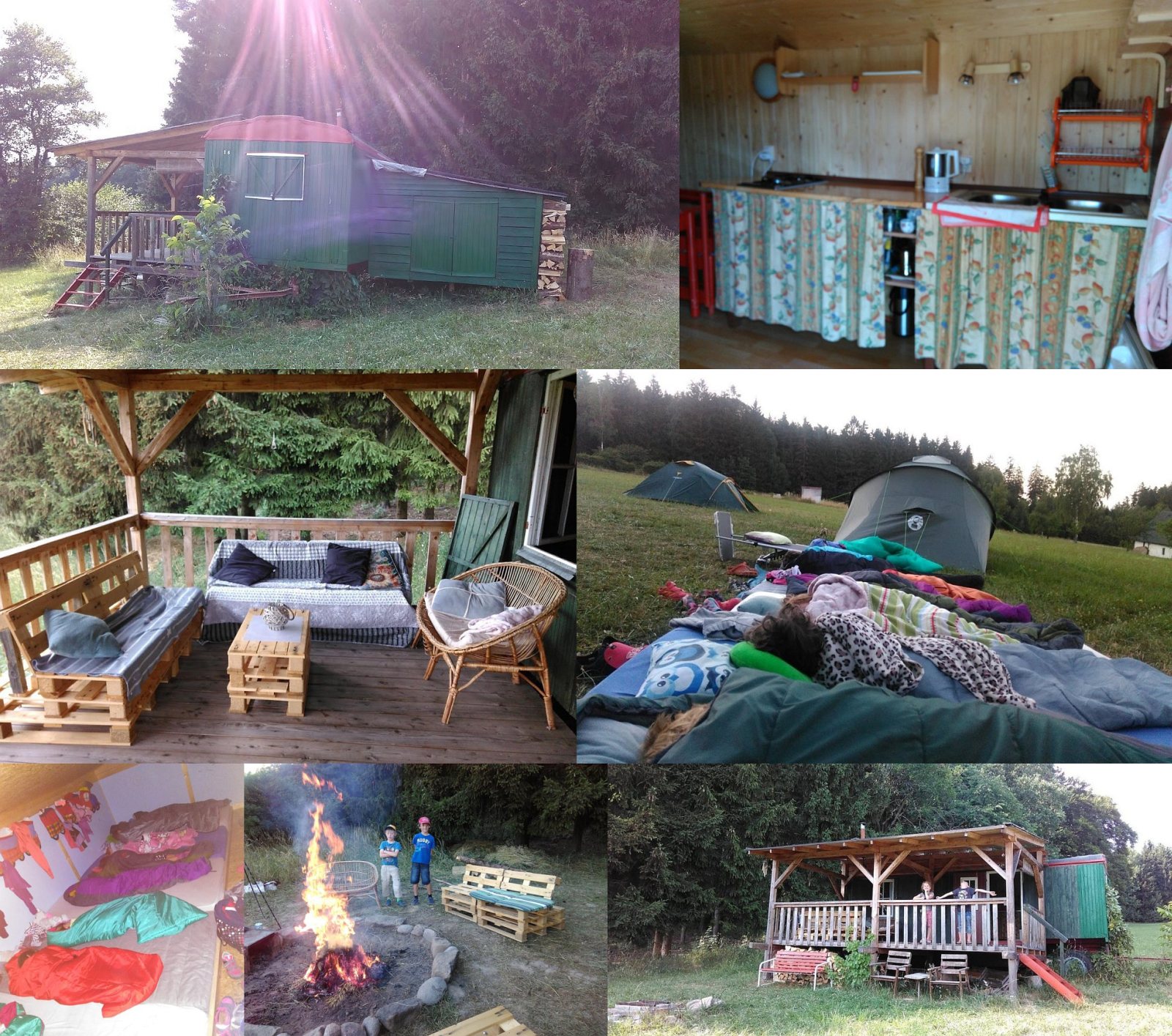 Preis: Celá sezóna: 500 Kč/maringotka/noc (max. 10 osob). V ceně je spotřeba plynu, dřeva do kamen i ohniště. Připlácí se za elektřinu podle skutečné spotřeby (3 Kč/kWh). Ceny platí i při ubytování jen na 1 noc.