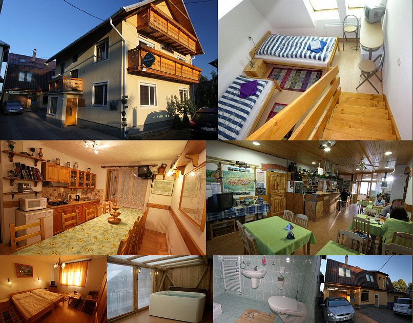 Unterkunft: Penzion s 16 izbami a 5 apartmánmi v dvoch budovách. Izby aj apartmány sú 2-lôžkové a majú vlastné soc. zariadenie, TV a chladničku. Dve spoločné kuchyne a jedálne. Spoločenské hry, knihy, elektronické šípky, stolný futbal. V penzionu je vlastná reštaurácia (34 miest, možnosť aj plnej penzie), letná terasa (36 miest), salónik (12 miest), bar, záhradný grill s posedením. Parkovanie pre 12 áut pri penzione. V penzione je jacuzzi (6 osôb), fínská sauna a mini fitness. Ponúkame odvoz na Podbanské, Tri Studničky, Štrbské Pleso a iné východiská túr.