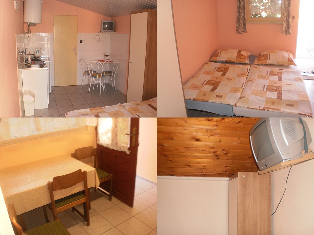 Unterkunft: Privát s dvomi apartmánmi. Apartmány sú 2- a 3-lôžkový. V každom apartmáne je samostatné WC, sprcha a kuchyňka (chladnička, varná kanvica, TV). Posedenie vonku s možnosťou grilovania, veľká záhrada. Parkovanie vo dvore zadarmo. Ideálne pre rodiny s detmi, ktoré uprednostňujú kľud. Ubytovanie je možné v mesiacoch 04-09.