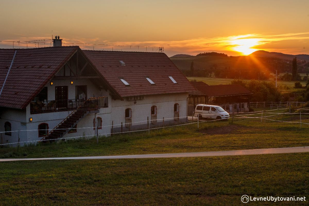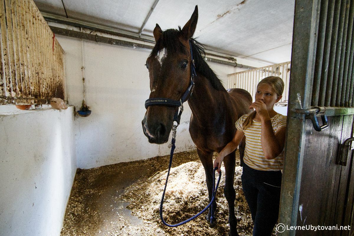 Unterkunft: Penzion s výhledem na pasoucí se koně a velkým jezdeckým areálem. V patře penzionu se nachází 6 pokojů pro hosty (2-lůžkových) a 2 apartmány (2-lůžkový + rodinný). Na každém pokoji je vlastní koupelna, TV, klimatizace, trezor i WiFi. Pokojům slouží dobře vybavená společná kuchyňka, apartmány mají vlastní. Velká společenská místnost (sál) s jídelnou (možnost konání firemních akcí). Možnost snídaní i zakoupení místních vín. Pobyt s malými zvířátky možný. Bezplatné parkoviště pro hosty. Povlečení i ručníky jsou v ceně.