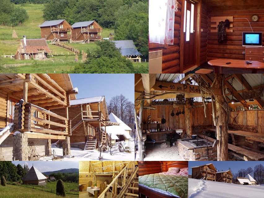 Unterkunft: Dva dřevěné domy s celkem 4 apartmány (jeden vždy v přízemí, druhý v patře). V každém apartmánu je obývací pokoj (rozkládací sedací souprava, TV-SAT), ložnice (dvoulůžko), koupelna (sprchový kout, WC) a balkon s nádherným výhledem do krajiny. K penzionu patří koliba (možnost stravování, zakarpatská, slovenská i maďarská kuchyně) a sauna. Majitelé umí dobře česky.
