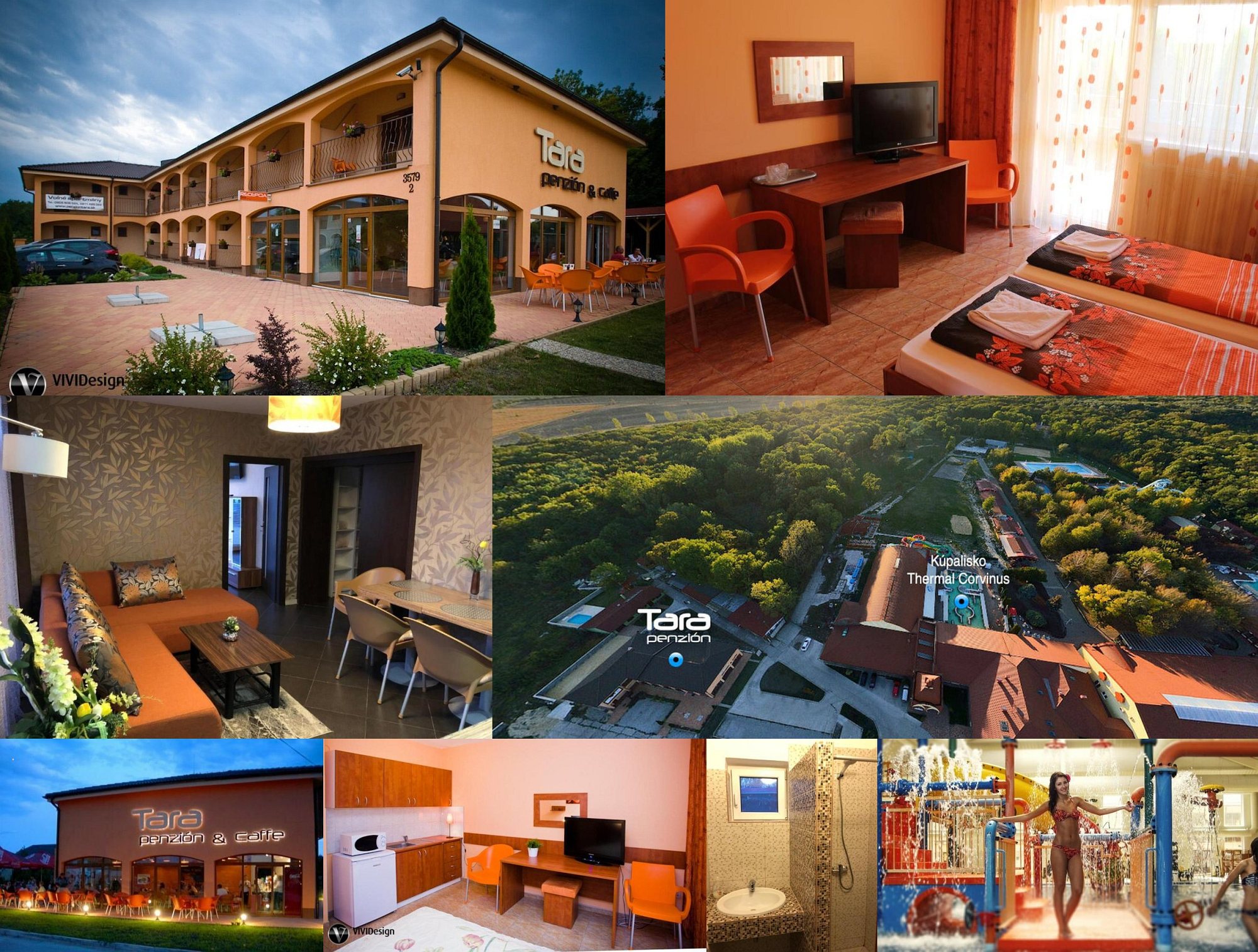 Standort: Priamo v susedstve areálu aquaparku a termálneho kúpaliska Thermal Corvinus vo Veľkom Mederi s celoročnou prevádzkou. Areál kúpaliska je obklopený 100ha lesoparkom. Možnost aj využitia wellness sveta blízkeho wellness hotela Orchidea. Veľký Meder sa nachádza medzi Dunajskou Stredou a Komárnom, 10 km od maďarských hraníc a 65 km od Bratislavy.